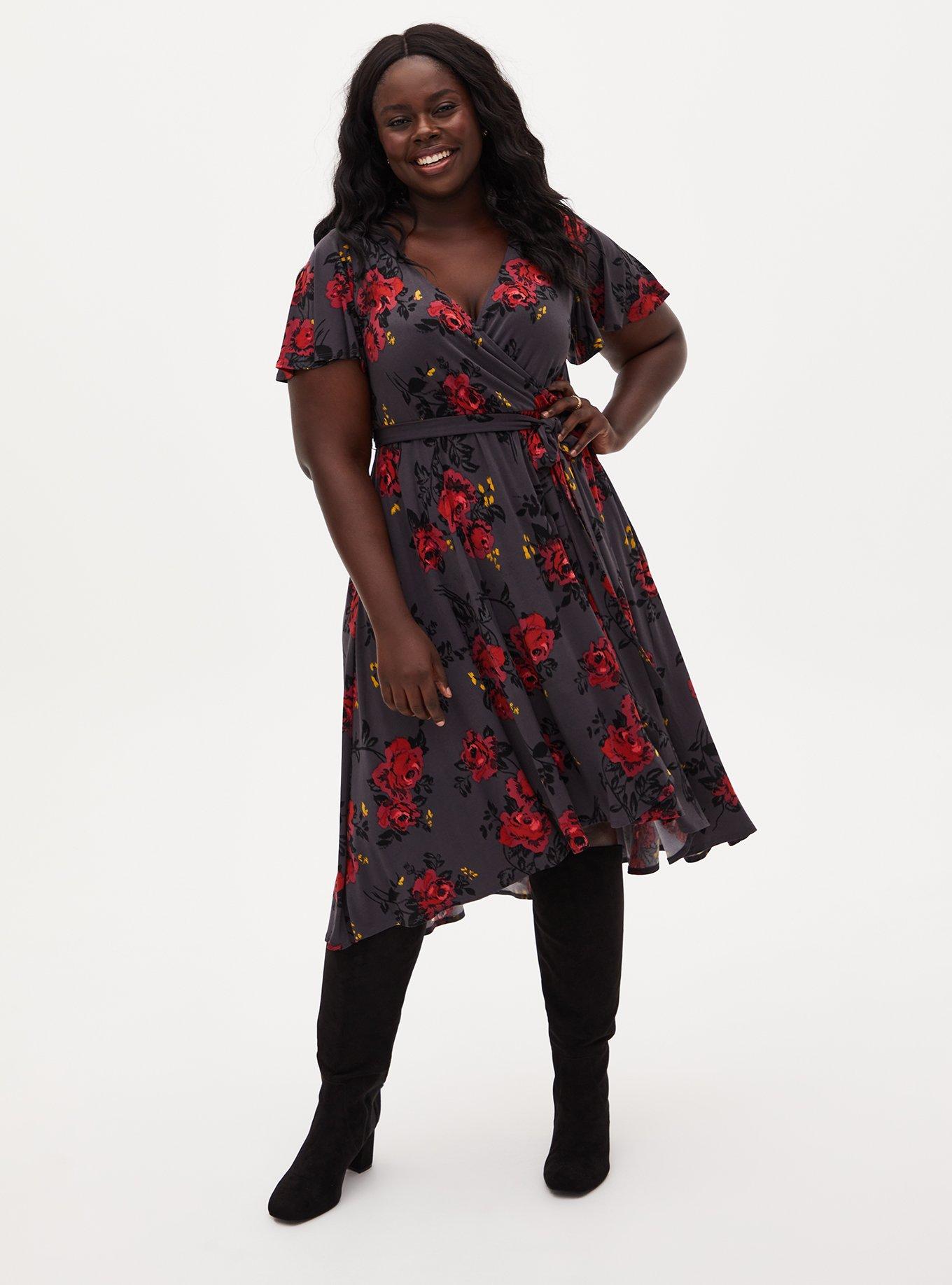Product Name: Grey floral wrap dress hot sale