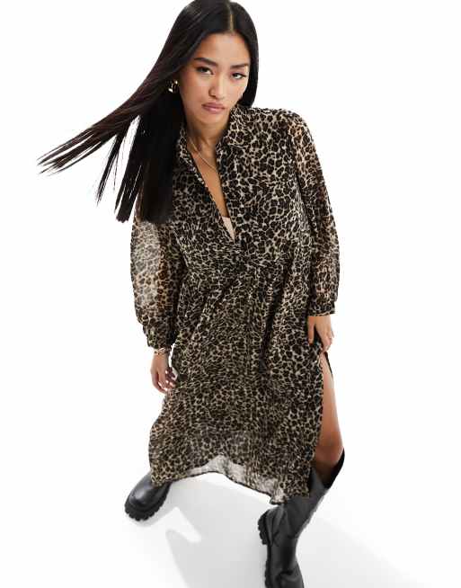 Product Name: Ladies leopard print shirt dress hot sale