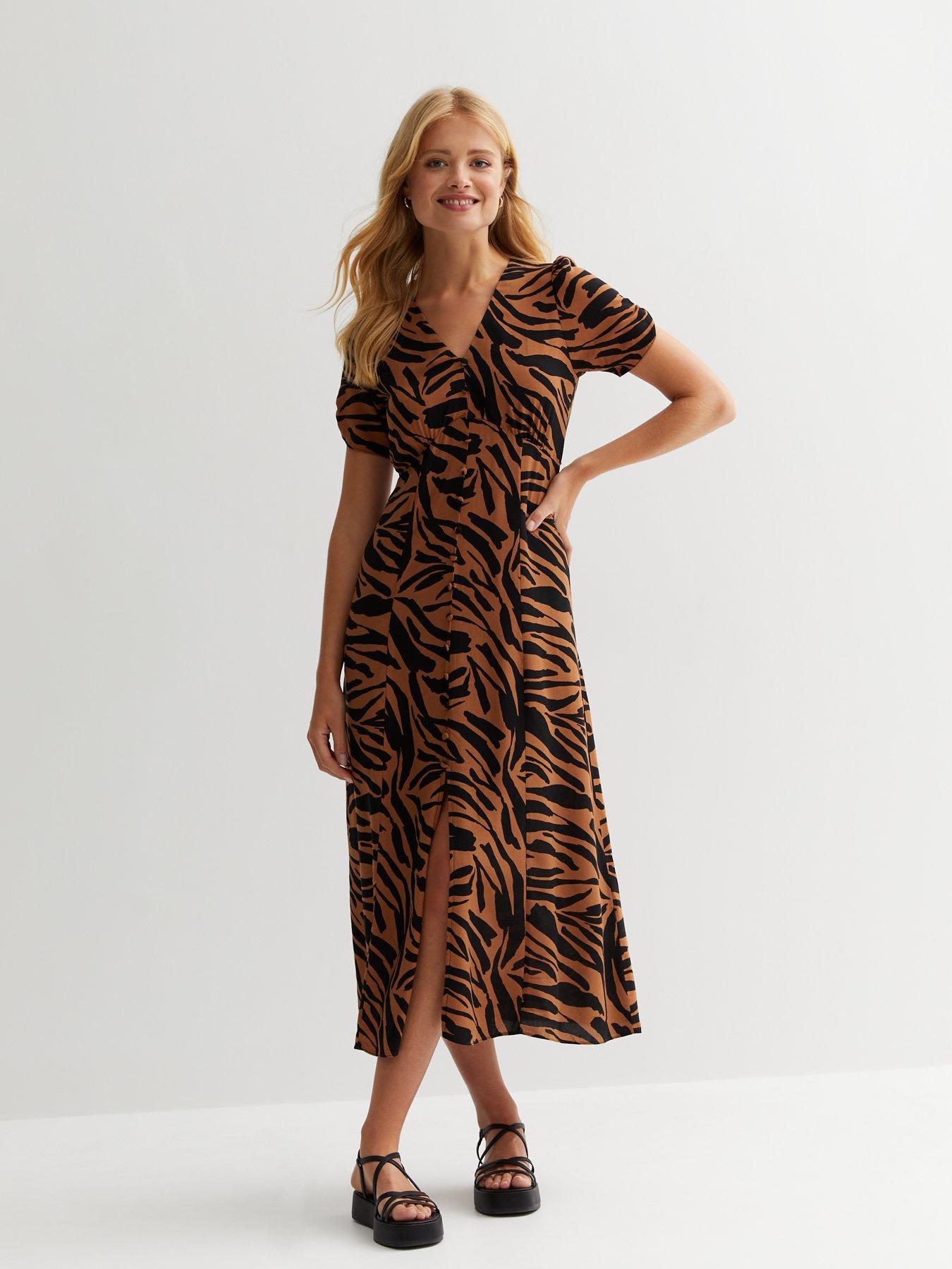 Product Name: Leopard stripe button front midi dress hot sale