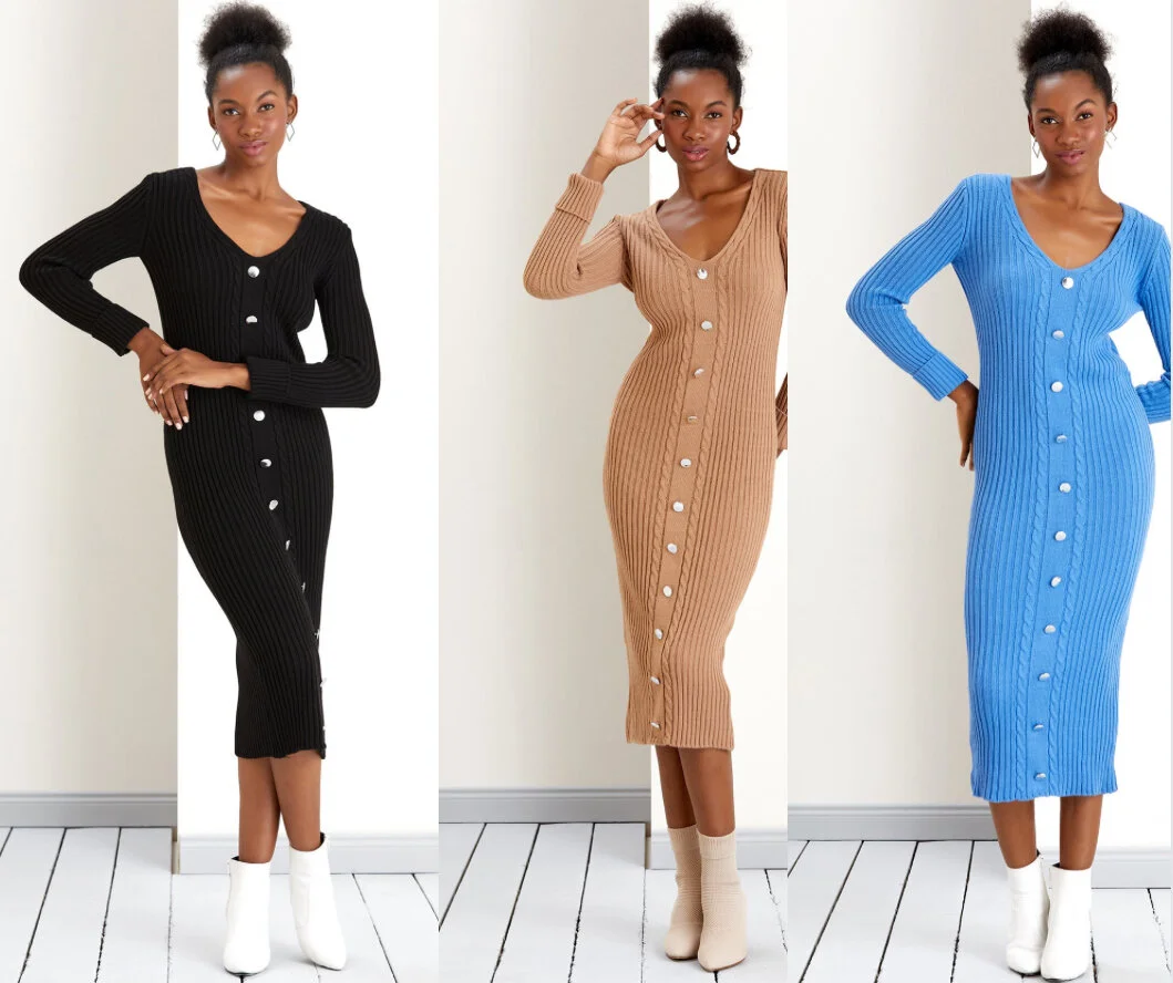 Product Name: Long sleeve button midi dress hot sale