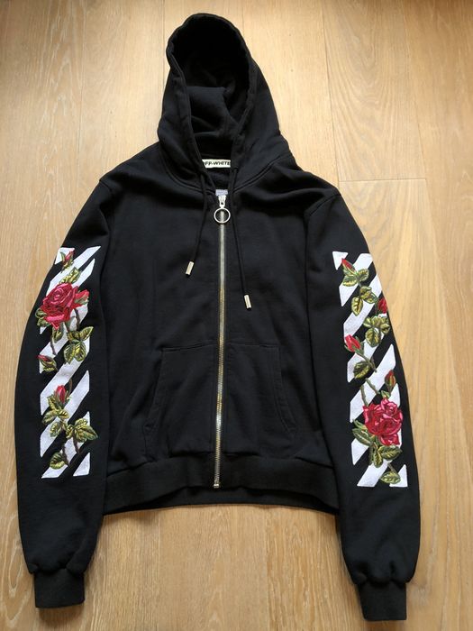 Product Name: Off white embroidered rose zip up hoodie hot sale