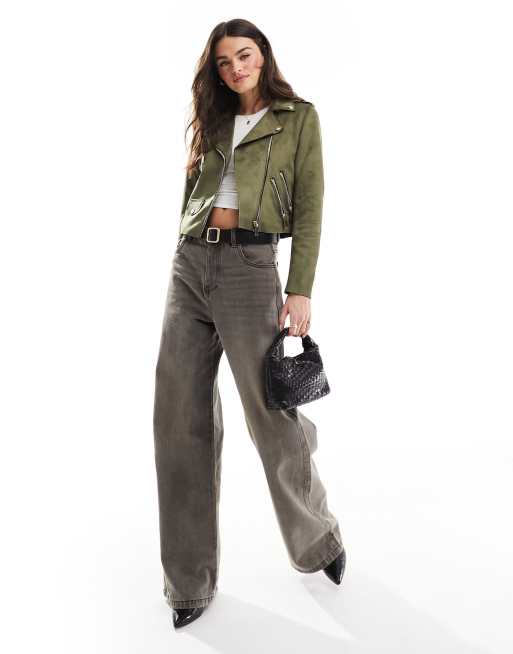 Product Name: River island khaki leather jacket hot sale