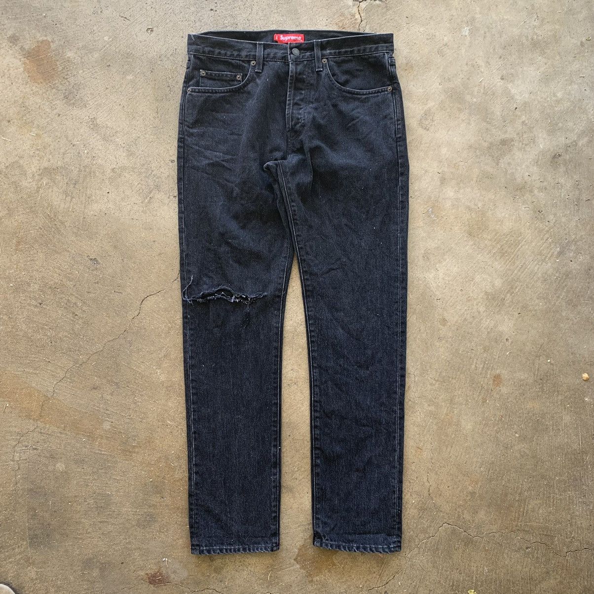 Product Name: Supreme stone washed black slim jeans hot sale