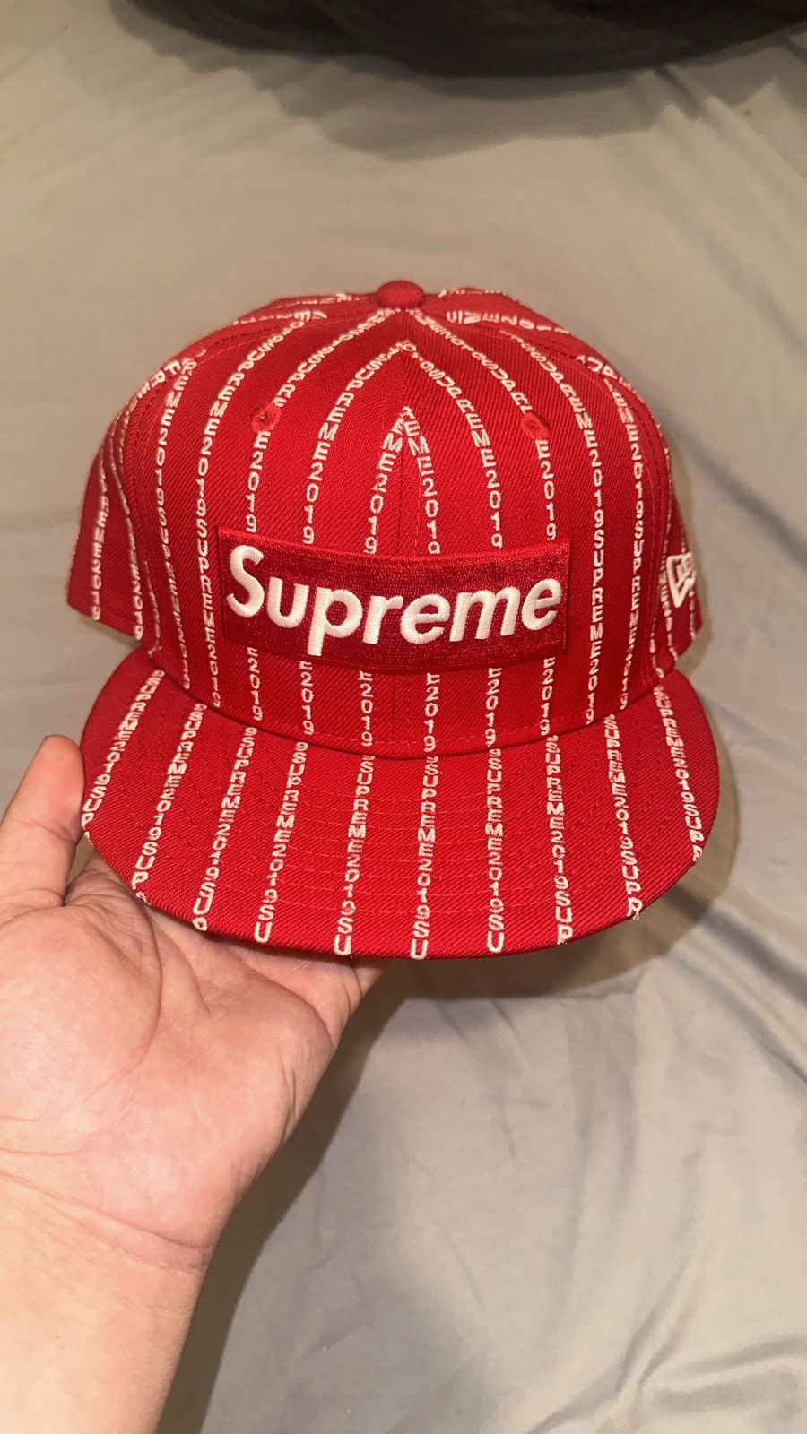 Product Name: Supreme text stripe new era hot sale