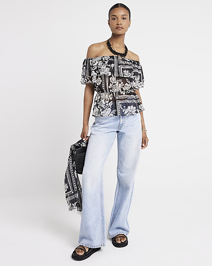 Product Name: Black floral bardot top hot sale