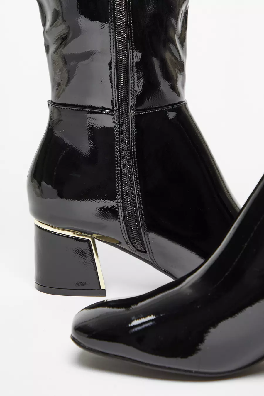 Product Name: Black patent knee high boots uk hot sale
